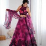*lehnga* –  Pure Organza digital Print + Jari work lehnga. 8mtr flair lehnga with canvas patta