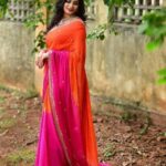 Soft Hand Dyeing Chinnon Saree With Heavy Embroidery Sequence And Jari Work And Border Arca